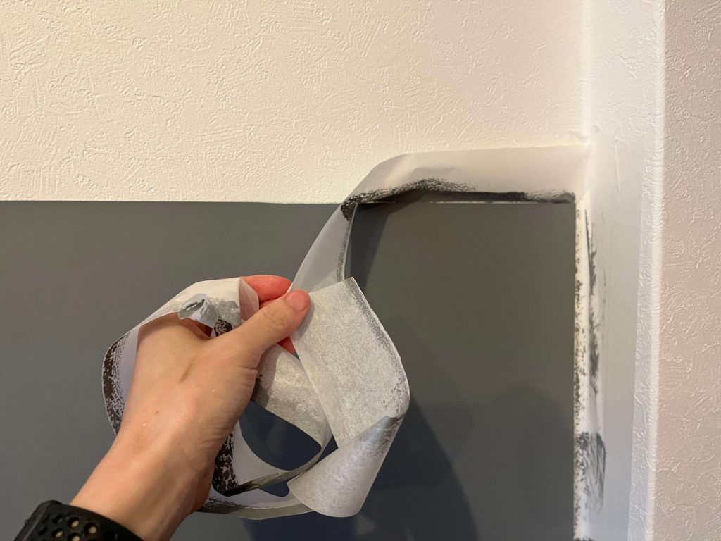 塗り終わったら、完全に乾く前に養生していたマスキングテープをはがします。