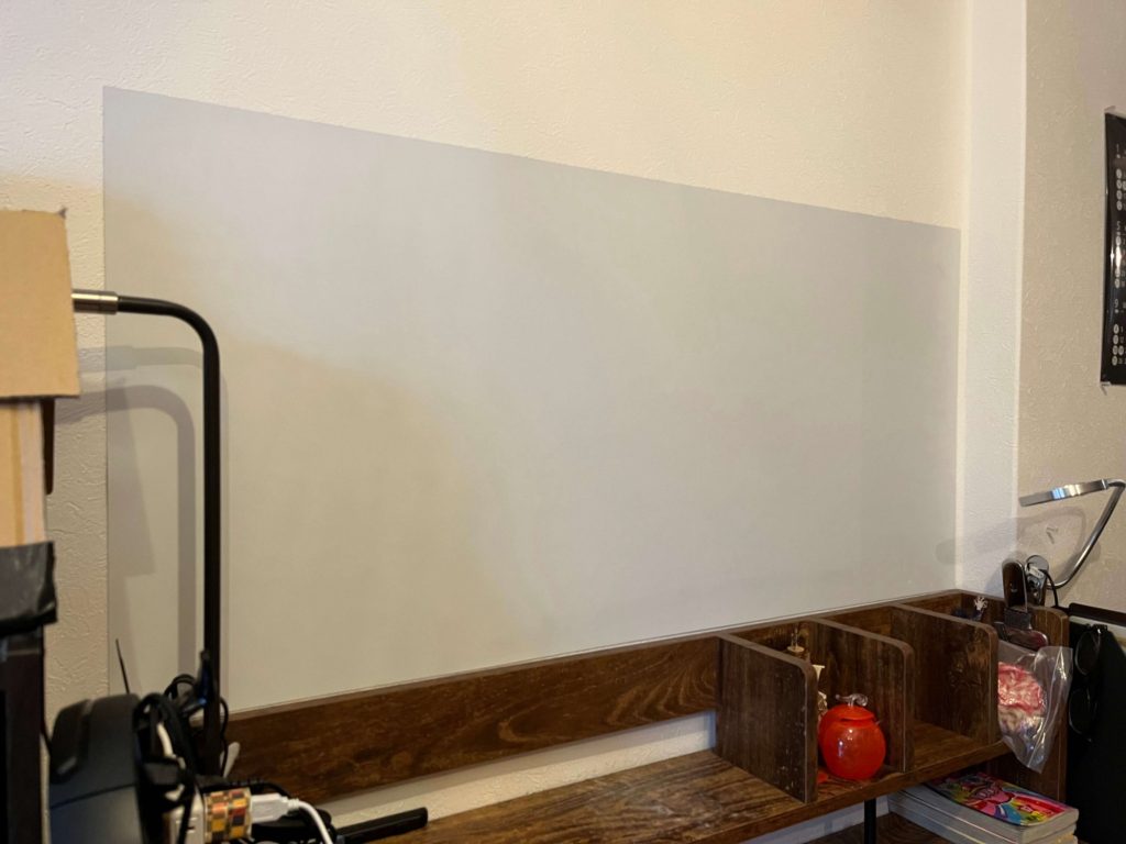 今回はデスクの壁に「マグカベ」というマグネットシートを貼って、水性塗料を塗っていく様子をご紹介します。