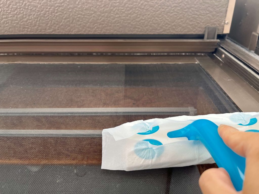 さっそく網戸に添わせてスーッと上から下へ。
